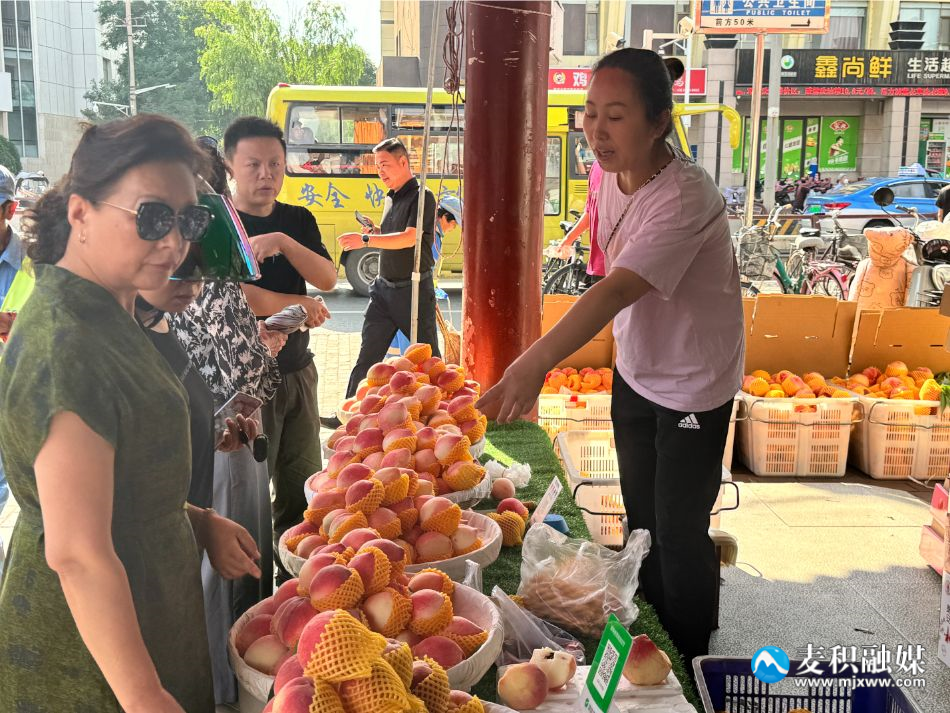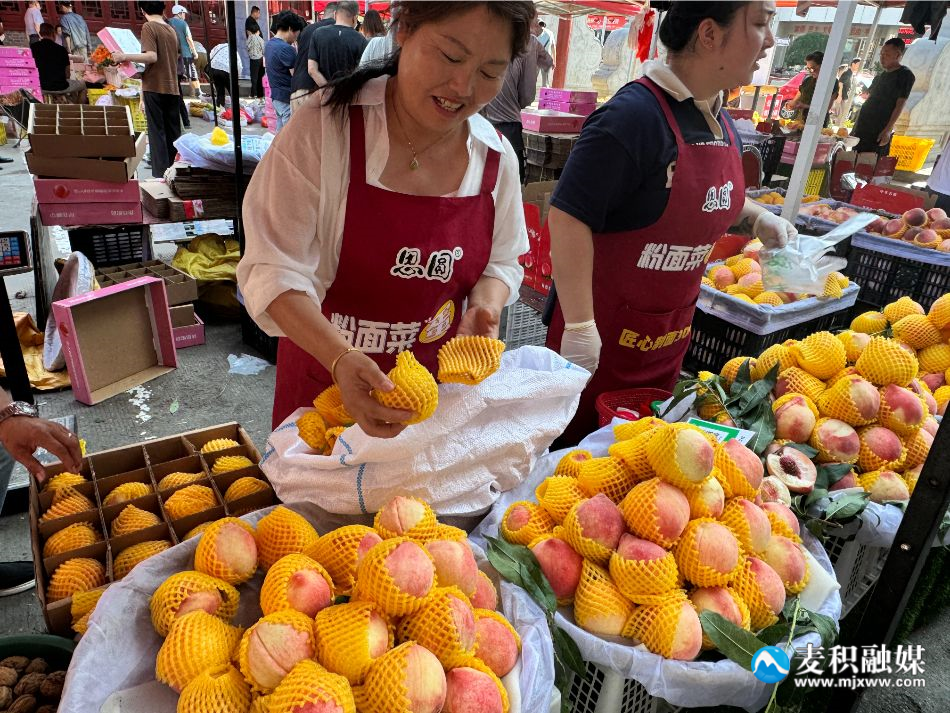 麥積區(qū)融媒體中心訊(記者魏碧雲(yún)王瑋瑕)近日,隨著大量鮮甜可口的桃子紛紛上市,麥積區(qū)仿古街便民市場內(nèi)更是桃香四溢,眾多市民紛紛在鮮桃攤點前駐足品嘗、選購。