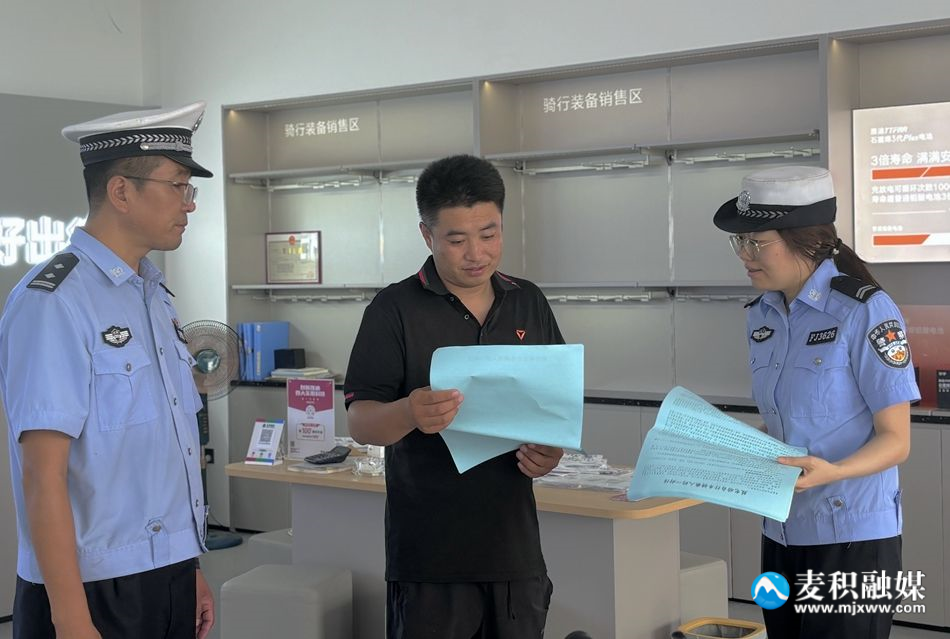 麥積區(qū)融媒體中心訊(記者杜佳宋倩倩)近期,為及時(shí)響應(yīng)民眾對(duì)于電動(dòng)車安全銷售問(wèn)題的關(guān)切,進(jìn)一步規(guī)范市場(chǎng)秩序,保障廣大消費(fèi)者的合法權(quán)益與出行安全,麥積區(qū)市場(chǎng)監(jiān)督管理局與麥積公安分局交警大隊(duì)攜手開(kāi)展電動(dòng)車安全銷售專項(xiàng)檢查行動(dòng)。此次行動(dòng)覆蓋了麥積區(qū)范圍內(nèi)的主要電動(dòng)車銷售網(wǎng)點(diǎn),旨在通過(guò)嚴(yán)格執(zhí)法與細(xì)致排查,從源頭上遏制電動(dòng)車安全隱患,營(yíng)造安全有序的電動(dòng)車市場(chǎng)環(huán)境。