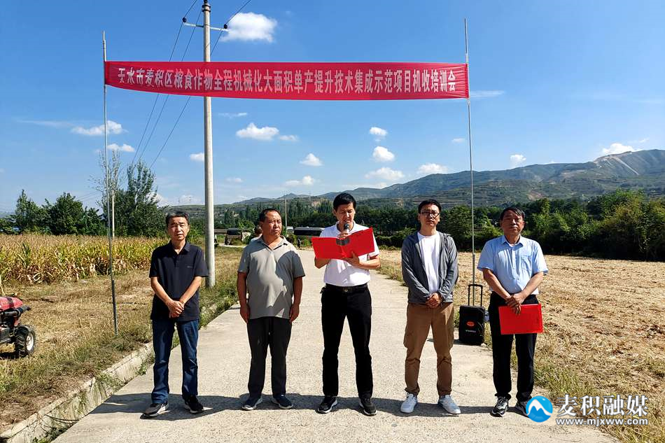 麥積區(qū)融媒體中心訊(記者吳雪镕)糧食安全是“國之大者”,實現(xiàn)糧食作物全程機(jī)械化生產(chǎn)是保障國家糧食安全的重要舉措。9月1日,天水市麥積區(qū)糧食作物全程機(jī)械化大面積單產(chǎn)提升技術(shù)集成示范項目機(jī)收現(xiàn)場演示培訓(xùn)會于通泰佳旺種植基地舉行。