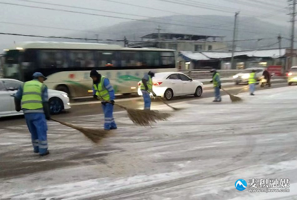 截至10日10時,麥積區(qū)環(huán)衛(wèi)中心共出動環(huán)衛(wèi)工人300余人開展除雪工作,撒鹽和融雪劑2噸,最大限度地減少了降雪對群眾出行造成的影響,保障了市民出行安全。