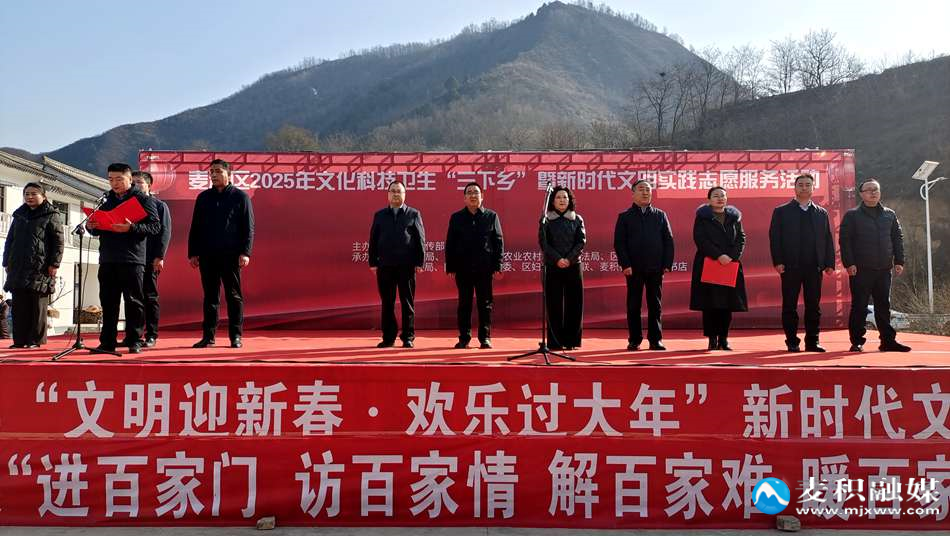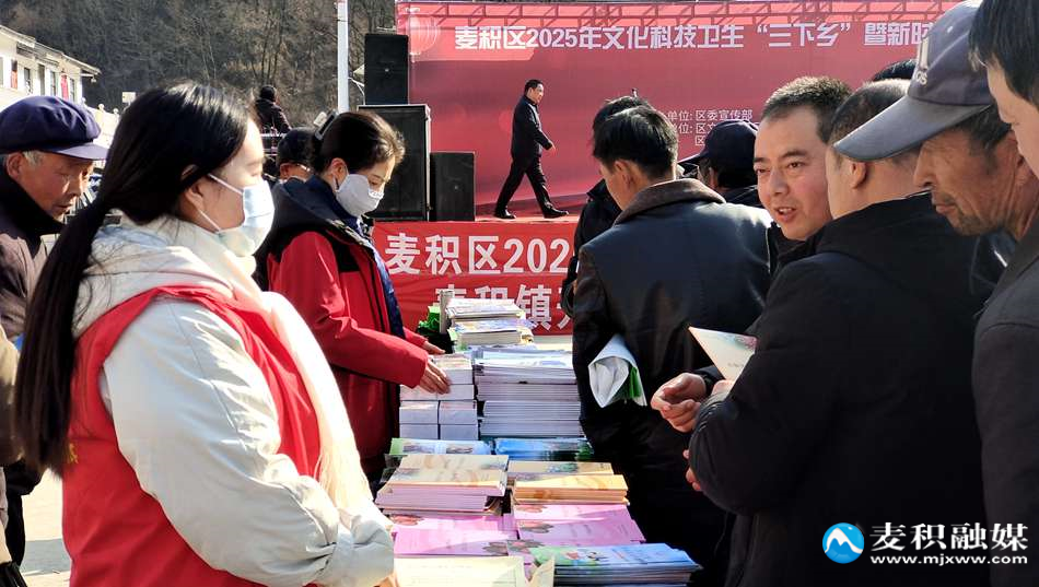 麥積區(qū)融媒體中心訊(記者吳雪镕胡旭東)為不斷豐富人民群眾精神文化生活,培育文明鄉(xiāng)風,1月9日,由麥積區(qū)委宣傳部主辦,區(qū)文旅局、區(qū)衛(wèi)健局、區(qū)農(nóng)業(yè)農(nóng)村局、區(qū)司法局、區(qū)人社局等多單位承辦的麥積區(qū)2025年文化科技衛(wèi)生“三下鄉(xiāng)”暨新時代文明實踐志愿服務活動在麥積鎮(zhèn)馮王村啟動;顒咏Y束后,區(qū)領導一同參觀展臺,并到部分村民家中慰問,送上新春的祝福。區(qū)領導溫建軍、楊彥芳、張弘、石根才出席活動。