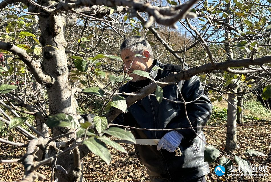 “一般冬剪就是這個(gè)時(shí)候把肥施上,冬天修剪。通過冬剪可以提高果樹來年的坐果率,讓樹冠通風(fēng)透光,達(dá)到增產(chǎn)的目的!币Π莅菀贿吺炀毜匦藜糁l,一邊向記者展示他所學(xué)到的技能。他解釋說,剪枝要采取以疏為主,緩、疏、縮相結(jié)合的修剪方法,以確保樹冠透光均勻,果實(shí)分布合理,從而實(shí)現(xiàn)優(yōu)質(zhì)高產(chǎn)。