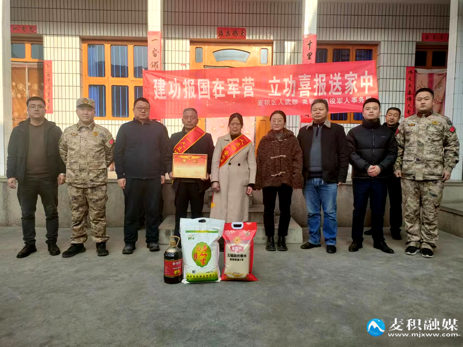 慰問(wèn)部分現(xiàn)役軍人家庭。春節(jié)前夕,區(qū)退役軍人事務(wù)局和區(qū)人武部共同組成慰問(wèn)小組,深入部分現(xiàn)役軍人家庭走訪慰問(wèn),感謝他們?yōu)椴筷?duì)、為祖國(guó)培養(yǎng)了優(yōu)秀的軍事人才,鼓勵(lì)家屬要一如既往支持軍人安心在部隊(duì)服役,支持國(guó)防建設(shè),同時(shí)詳細(xì)了解家庭情況,并表示會(huì)一如既往地做好擁軍優(yōu)屬工作,確保軍屬各項(xiàng)服務(wù)保障落實(shí)到位。家屬表示,將繼續(xù)做好軍人的堅(jiān)強(qiáng)后盾,一如既往地支持國(guó)防建設(shè),讓親人在部隊(duì)建功軍營(yíng),爭(zhēng)取再創(chuàng)佳績(jī)。通過(guò)走訪慰問(wèn)現(xiàn)役軍人家庭,慰問(wèn)的是軍屬,激勵(lì)的是軍心。使軍人家屬感受到了黨和政府的關(guān)懷和溫暖。據(jù)統(tǒng)計(jì),自歲末年初以來(lái),麥積區(qū)已陸續(xù)收到30余份三等功喜報(bào)。為了將這份榮譽(yù)及時(shí)送到軍人軍屬手中,麥積區(qū)退役軍人事務(wù)局聯(lián)合區(qū)人武部,攜手鎮(zhèn)街道、村社區(qū),共同開(kāi)展上門(mén)送喜報(bào)活動(dòng)。這一舉措不僅讓軍人軍屬感受到了來(lái)自黨和政府的溫暖與關(guān)懷,更在全社會(huì)營(yíng)造了一種“一人當(dāng)兵,全家光榮”的濃厚氛圍,進(jìn)一步提升了軍人的社會(huì)尊崇感和軍屬的幸福感。立功喜報(bào),是軍人無(wú)上的榮譽(yù)象征,也是軍屬默默支持與付出的最好見(jiàn)證。它記錄著軍人在國(guó)防事業(yè)中的無(wú)私奉獻(xiàn)和矢志強(qiáng)軍的堅(jiān)定信念。近年來(lái),麥積區(qū)退役軍人事務(wù)局始終秉持著“服務(wù)軍人軍屬,弘揚(yáng)擁軍優(yōu)屬傳統(tǒng)”的宗旨,積極落實(shí)各項(xiàng)擁軍優(yōu)屬政策,不斷提升軍人和軍屬的社會(huì)榮譽(yù)感。