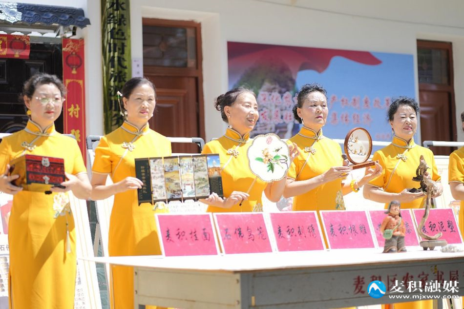 活動現(xiàn)場設(shè)置了非遺展演、作品展示、互動體驗等多個環(huán)節(jié)。麥積區(qū)非遺部分代表性項目展演率先登場。舞臺上,模特手持精美的非遺作品優(yōu)雅走秀,根雕的古樸大氣、泥塑的惟妙惟肖、剪紙的精巧細致、刺繡的絢麗多彩、雕漆的華麗精美,在模特的展示下盡顯非遺魅力。同時,麥積小曲、秦腔等經(jīng)典非遺戲曲輪番上演。麥積小曲悠揚婉轉(zhuǎn),用獨特的唱腔講述著麥積的故事;秦腔慷慨激昂,一聲聲吶喊唱出了西北人的豪邁與熱情,讓觀眾沉浸在傳統(tǒng)戲曲文化的韻味之中。書畫藝術(shù)工作者還現(xiàn)場揮毫潑墨,將一幅幅飽含祝福的書畫作品贈予村民,實現(xiàn)藝術(shù)反哺鄉(xiāng)村。文化溫情在筆墨流轉(zhuǎn)間直達人心。