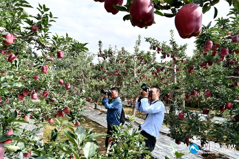 活動現(xiàn)場,漫山遍野的花牛蘋果掛滿枝頭,紅彤彤的果實盡顯豐收喜悅。區(qū)攝影家協(xié)會會員們深入果園深處,手中的“長槍短炮”不停閃爍,“咔咔”快門聲此起彼伏。他們以獨特視角捕捉蘋果成熟的細節(jié)、果農(nóng)勞作的場景,全方位展現(xiàn)花牛蘋果的優(yōu)良品質(zhì)與豐收盛況。同時,協(xié)會內(nèi)的自媒體達人、主播同步開啟了現(xiàn)場直播,通過各自平臺向網(wǎng)友實時分享采風過程,讓更多人直觀感受南山花牛蘋果基地的魅力。