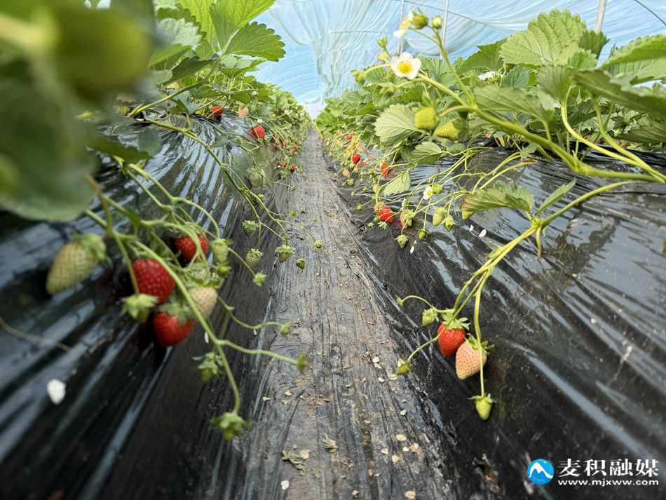 麥積區(qū)融媒體中心訊(記者杜佳宋倩倩任澤瑄)小雪節(jié)氣后,寒意漸濃,麥積區(qū)中灘鎮(zhèn)富豐果蔬采摘農(nóng)場的草莓大棚內(nèi)卻溫暖如春,生機(jī)盎然。紅潤飽滿、粉白相間的草莓在綠葉間若隱若現(xiàn),不僅承載著農(nóng)場負(fù)責(zé)人龐斌的豐收喜悅,更孕育著鄉(xiāng)村振興路上的“甜蜜”希望。