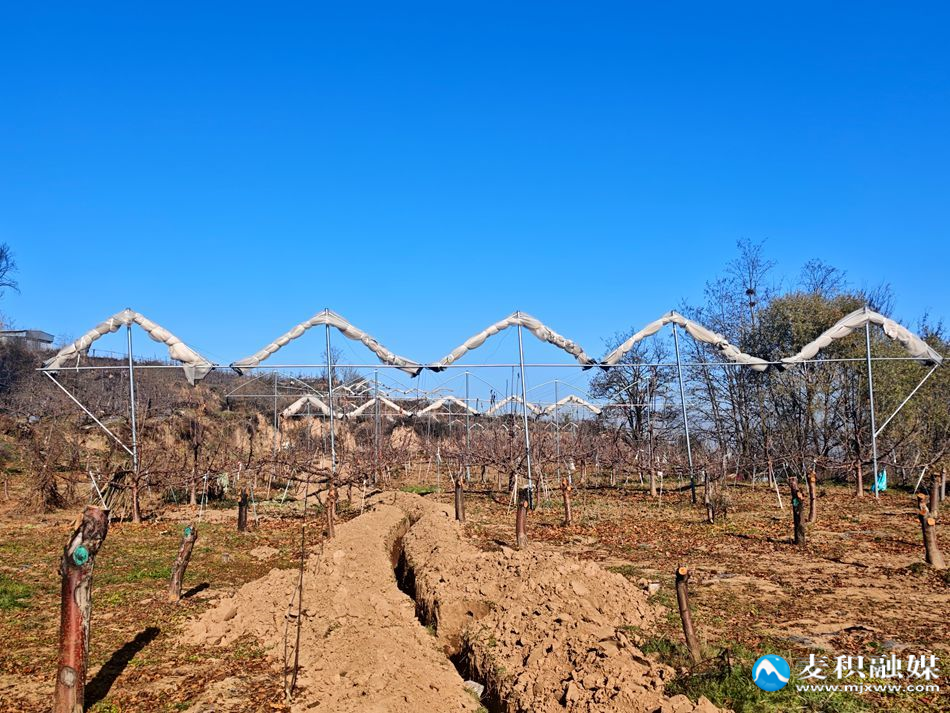 麥積區(qū)融媒體中心訊(記者張丹魏碧雲(yún))初冬時節(jié),麥積區(qū)馬跑泉鎮(zhèn)的果園里仍是一派繁忙景象。果農(nóng)們穿梭于林間,精心修剪枝條;田間地頭,施工人員正在加緊鋪設(shè)滴灌管道;而在已經(jīng)完成建設(shè)的區(qū)域,高高撐起的防雹網(wǎng)如同為果園披上了一層潔白的“防護甲”。這一幕幕生動的勞動場景,正是馬跑泉鎮(zhèn)大力推進惠民工程、全域助力產(chǎn)業(yè)振興的鮮活寫照。