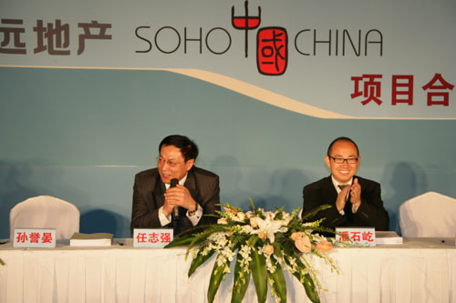 今天,在華遠(yuǎn)成功收購(gòu)幸福實(shí)業(yè)上市公司之際,我們SOHO中國(guó)又與我們的老朋友華遠(yuǎn)成交了兩單大生意,對(duì)華遠(yuǎn)公司來(lái)說(shuō)是喜上加喜,對(duì)SOHO中國(guó)來(lái)說(shuō)也是一件大喜事。所以,今天是我們雙方大喜的日子。