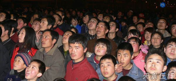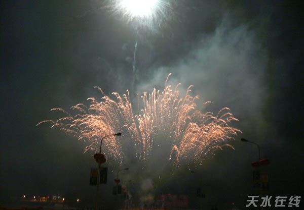男:萬(wàn)紫千紅總是春,火樹銀花不夜城。此時(shí)此刻,這里的夜空真是花的海洋,這里的葫蘆河橋頭真是人群的海洋,整個(gè)秦安縣城真是歡樂(lè)的海洋。