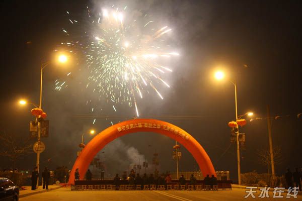 女:這里是秦安縣第六屆“秦融之春”元宵焰火晚會(huì)現(xiàn)場(chǎng),由秦安縣委宣傳部、縣文化旅游局、縣廣播電影電視局主辦,縣農(nóng)村信用合作聯(lián)社承辦的全縣第六屆“秦融之春”元宵焰火晚會(huì)今晚將在葫蘆河大橋隆重舉行。這是今年我縣春節(jié)文化活動(dòng)的一項(xiàng)主要內(nèi)容。