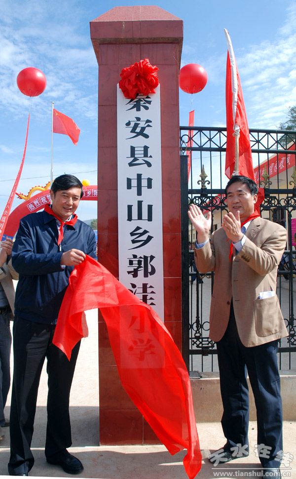 甘肅省國稅局副局長劉金良和天水市人民政府副市長趙衛(wèi)東為郭洼小學(xué)揭牌