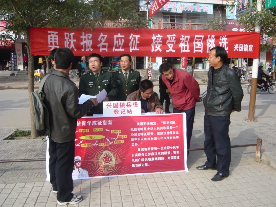 近日,秦安縣興國(guó)鎮(zhèn)武裝部在興國(guó)文化廣場(chǎng)開設(shè)兵役登記站,現(xiàn)場(chǎng)辦理兵役登記報(bào)名事宜,向適齡青年解答今冬征兵有關(guān)政策。