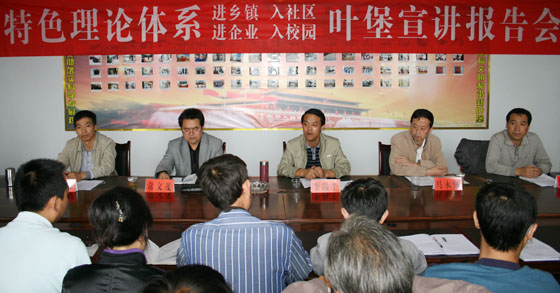 9月6日,秦安縣委宣講團特色理論體系“進鄉(xiāng)鎮(zhèn)、入社區(qū),進企業(yè)、入校園”宣講對談活動首場報告會在葉堡鄉(xiāng)隆重舉行?h委常委、宣傳部長李尚平作了重要講話,縣委黨校副校長、縣委宣講團副團長馬永強,縣農業(yè)局經管站站長郭成分別就國務院辦公廳《關于進一步支持甘肅經濟社會發(fā)展的若干意見》、農村經濟發(fā)展和農民專業(yè)合作社建設等內容作了深入淺出、通俗易懂的專題輔導報告,并與鄉(xiāng)村兩級干部進行了面對面的交流對談,詳細回答了駐村干部蔡金平、大學生村官李彩云等干部在農業(yè)農村工作中遇到的一些熱點難點問題,受到了干部群眾的一致好評。宣講報告會由葉堡鄉(xiāng)黨委書記王優(yōu)峰主持,鄉(xiāng)村兩級干部、鄉(xiāng)屬各單位干部職工共100多人參加了報告會。