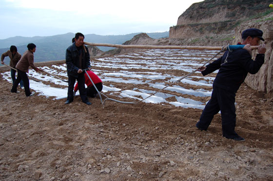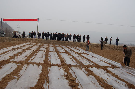 今年秦安縣繼續(xù)把旱作節(jié)水農(nóng)業(yè)技術(shù)全膜覆蓋推廣應(yīng)用作為“保增長、保民生、保穩(wěn)定”的重要措施和科技抗旱增收1號工程緊抓不放, “早”字當(dāng)頭,早規(guī)劃,早安排,早部署,早行動,堅持集中連片、點面結(jié)合的原則,按照“解凍一片,覆膜一片”的步驟,主要領(lǐng)導(dǎo)和分管領(lǐng)導(dǎo)多次深入各鄉(xiāng)鎮(zhèn)督促檢查,解決具體困難和問題,縣四大組織包鄉(xiāng)領(lǐng)導(dǎo)分赴春耕生產(chǎn)第一線,蹲點駐村,靠前指揮,落實任務(wù), 農(nóng)口部門及時抽調(diào)100名技術(shù)人員,組成10個技術(shù)服務(wù)小組,分赴17個鄉(xiāng)鎮(zhèn)的428個行政村的田間地頭進(jìn)行覆膜技術(shù)指導(dǎo),各鄉(xiāng)鎮(zhèn)黨政一把手負(fù)總責(zé),采取有效措施,廣泛發(fā)動群眾,根據(jù)地域?qū)嶋H,動員群眾在果園地里覆黑膜、預(yù)留地覆白膜,保墑蓄墑。同時,縣上及時將省級補(bǔ)貼地膜300噸地膜,鋪膜機(jī)、起壟機(jī)458臺,縣上每畝配套補(bǔ)貼1.5公斤地膜,全部落實到農(nóng)戶手中,極大地調(diào)動了群眾的積極性。農(nóng)資部門積極組織農(nóng)民群眾急需的抗旱物資,向農(nóng)民群眾調(diào)供化肥、種子、起壟覆膜機(jī)等備耕物資。目前。該縣西片以千戶為點,建立規(guī)模較大的示范基點,通過延伸,形成千戶、西川、劉坪、蓮花、五營、隴城一條線,南片以云山為點,形成中山、興豐、王尹、云山一條線,北片建成葉堡、安伏、魏店、王甫一條線的“兩點三線”的頂凌覆膜有序進(jìn)行。