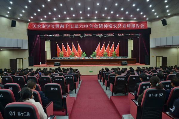 11月8日上午,天水市學(xué)習(xí)貫徹黨的十七屆六中全會(huì)暨天水市第六次黨代會(huì)精神宣講報(bào)告會(huì)在秦安縣行政中心二樓禮堂召開(kāi)。市委宣講團(tuán)團(tuán)長(zhǎng)、市社科聯(lián)副主席張勃林,市委黨校黨史黨建教研室副主任、副教授蒲曉光,市委黨校黨史黨建教研室副教授高建蘭出席宣講報(bào)告會(huì)。