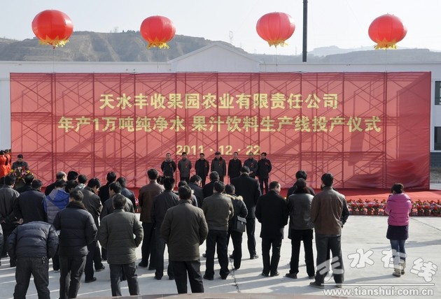 12月22日,天水豐收果園農(nóng)業(yè)有限責(zé)任公司年產(chǎn)1萬噸純凈水、果汁飲料生產(chǎn)線項目投產(chǎn)儀式在秦安縣隆重舉行。秦安縣委常委、紀(jì)委書記楊仁義,副縣長張輝元,甘肅東煜集團(tuán)黨委書記、常務(wù)副總裁王和平,副總裁王輝及縣直有關(guān)部門負(fù)責(zé)人出席投產(chǎn)儀式。