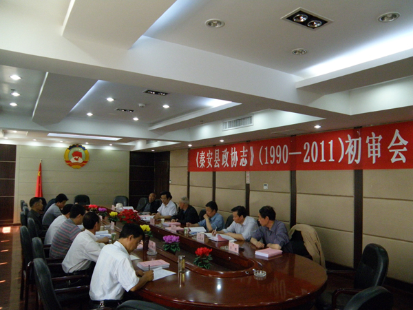 5月30日下午,縣政協(xié)在行政辦公中心九樓政協(xié)會議室召開會議,就《秦安縣政協(xié)志》(1990—2011)進行初審?h政協(xié)原主席王志仁、馮文虎,副主席趙生貴、辛剛,秘書長周興仁、南月政,專委會主任靳潤德和縣政協(xié)主席高霆鈞、副主席馬振寰,秘書長辦公室主任蔡永祥,縣志辦主任王廣林等參加了會議。會議由縣政協(xié)主席高霆鈞主持。