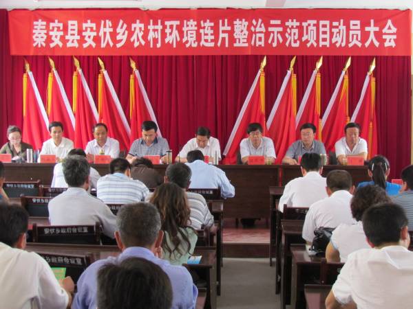 2012年6月14日,秦安縣召開安伏鄉(xiāng)農(nóng)村環(huán)境連片整治示范項目實施動員大會?h委常委、紀委書記楊仁義,縣委常委、副縣長任佩光及縣政府辦、環(huán)保局、安伏鄉(xiāng)政府負責人,各項目村駐村干部,村黨支部書記,村委會主任,村文書,群眾代表和鄉(xiāng)屬單位負責人參加了動員大會。