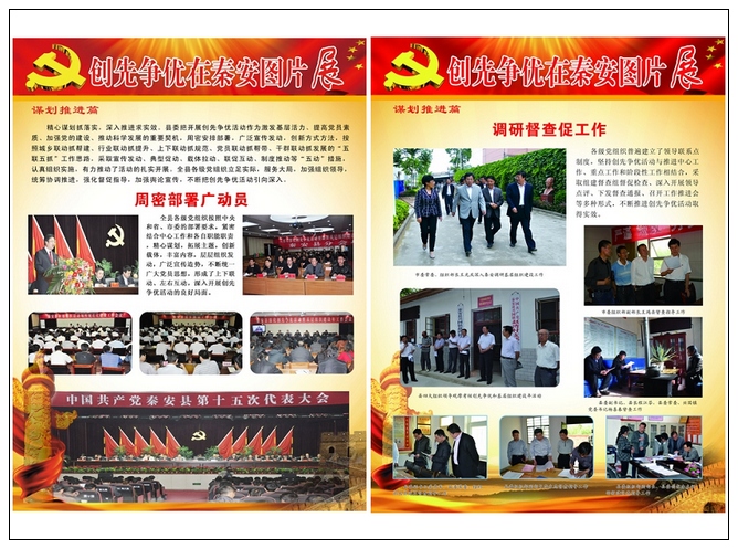黨旗高揚(yáng)展風(fēng)采,創(chuàng)先爭(zhēng)優(yōu)結(jié)碩果。6月29日,在中國共產(chǎn)黨成立91周年之際,由縣委組織部、縣委宣傳部、縣委創(chuàng)優(yōu)辦組織舉辦的“創(chuàng)先爭(zhēng)優(yōu)在秦安”大型圖片展隆重開展。縣委常委、組織部長郭海軍主持開展儀式,縣委副書記裴貴軍致辭。