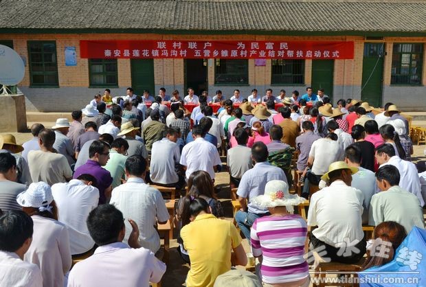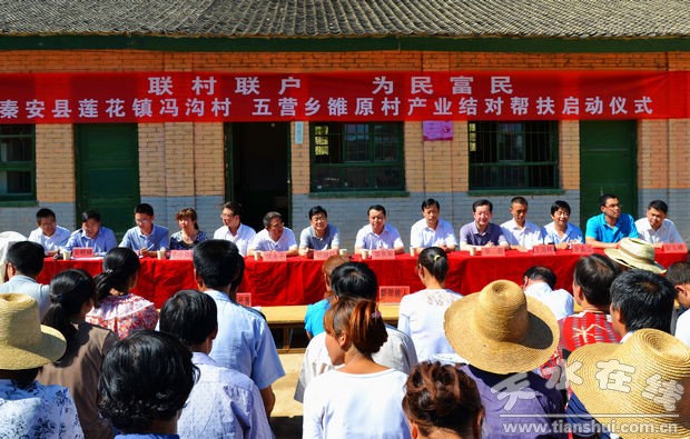 秦安縣“雙聯(lián)”縱深推進(jìn)中,創(chuàng)新方式方法,在蓮花鎮(zhèn)馮溝村與五營鄉(xiāng)雒原村開展以“支部與支部結(jié)對幫扶筑堡壘、戶幫戶提技術(shù)、村帶村促產(chǎn)業(yè)”為內(nèi)容的“產(chǎn)業(yè)結(jié)對幫扶”活動,通過實施“產(chǎn)業(yè)結(jié)對幫扶”活動,加快全鄉(xiāng)產(chǎn)業(yè)結(jié)構(gòu)調(diào)整步伐,實現(xiàn)全鄉(xiāng)果樹全覆蓋,形成“一鄉(xiāng)一業(yè),一村一品”的產(chǎn)業(yè)結(jié)構(gòu)布局,確保農(nóng)業(yè)生產(chǎn)持續(xù)增效,農(nóng)民收入不斷提高,農(nóng)村社會全面進(jìn)入小康。8月2日,秦安縣蓮花鎮(zhèn)馮溝村、五營鄉(xiāng)雒原村產(chǎn)業(yè)結(jié)對幫扶啟動儀式在雒源村舉行。縣委副書記裴貴軍,縣委辦、農(nóng)工部、農(nóng)業(yè)局、林業(yè)局、果業(yè)局、交通局、統(tǒng)計局、蓮花鎮(zhèn)、五營鄉(xiāng)等部門和單位的負(fù)責(zé)人,雒原村縣、鄉(xiāng)聯(lián)戶干部,五營鄉(xiāng)全體干部,雒原村特困戶、養(yǎng)殖戶代表及馮溝村村兩委班子成員和20名結(jié)對幫扶能人共160多人參加啟動儀式。
