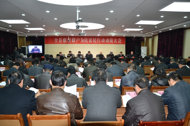 聯(lián)村聯(lián)戶暖民心 全縣各級(jí)黨組織把“聯(lián)村聯(lián)戶、為民富民”行動(dòng)作為創(chuàng)先爭(zhēng)優(yōu)活動(dòng)的最大實(shí)踐,引導(dǎo)黨員干部深入農(nóng)村一線,查民情、訪民意、解民憂、辦實(shí)事。全縣222個(gè)縣直部門(mén)和鄉(xiāng)鎮(zhèn)黨組織,4100多名黨員干部與省、市部門(mén)及領(lǐng)導(dǎo)一起,與全縣335個(gè)貧困村、15410戶特困戶結(jié)成聯(lián)幫對(duì)子,在助推貧困村興業(yè)發(fā)展中創(chuàng)先進(jìn),在扶助特困戶脫貧致富中爭(zhēng)優(yōu)秀。