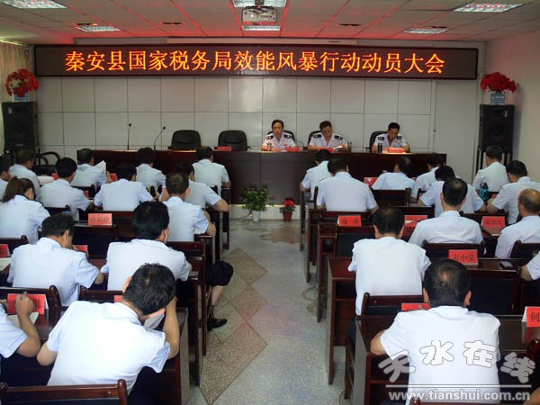 在秦安縣召開效能風(fēng)暴行動(dòng)動(dòng)員大會(huì)之后,縣國稅局高度重視,迅速召開全體干部職工會(huì)議,學(xué)習(xí)傳達(dá)了省、市、縣關(guān)于開展機(jī)關(guān)效能風(fēng)暴行動(dòng)動(dòng)員會(huì)議精神,研究成立了國稅局效能風(fēng)暴行動(dòng)領(lǐng)導(dǎo)小組,安排部署了機(jī)關(guān)效能風(fēng)暴行動(dòng)各項(xiàng)工作。要求全局干部職工按照上級(jí)的統(tǒng)一部署,積極行動(dòng),扎實(shí)有效推進(jìn)機(jī)關(guān)效能風(fēng)暴行動(dòng),切實(shí)提升國稅部門為納稅人解難題、辦實(shí)事的能力和水平 。