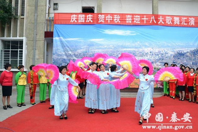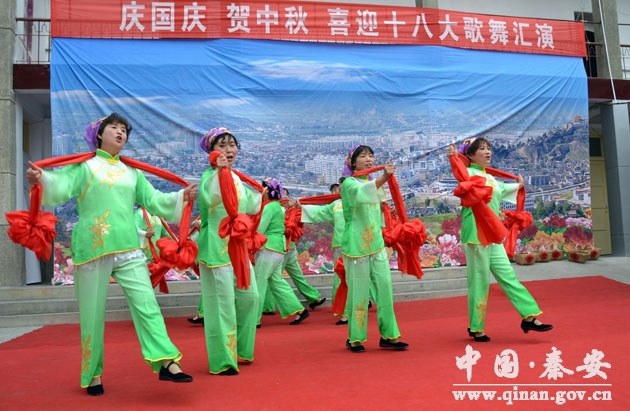 歡聲笑語(yǔ)慶國(guó)慶,載歌載舞賀中秋。為慶祝中秋佳節(jié)和建國(guó)63周年,營(yíng)造熱烈、歡樂(lè)、文明、和諧的節(jié)日文化氛圍,豐富秦安民眾的精神文化生活,在“雙節(jié)”黃金周期間,秦安縣文化館歌舞飄揚(yáng),花團(tuán)錦簇,展演了一系列豐富多彩的文化活動(dòng),包括喜迎“十八大”圖片展、秦安縣國(guó)家省市級(jí)非物質(zhì)文化遺產(chǎn)圖片展、安慶祥先生書(shū)法展、歌舞匯演等。本次系列文化活動(dòng)于9月28日全面開(kāi)展,一直持續(xù)至10 月6日。
