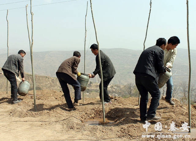 (雙聯(lián)掛職干部和群眾一起為新栽樹澆水)