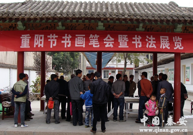 秋色撩人神氣爽,紅葉翩然菊蕊香。2013年10月13日,由縣文聯(lián)、縣文化館、縣書協(xié)、縣美協(xié)聯(lián)合主辦的“重陽節(jié)書畫筆會暨書法展覽”在文化館舉行。