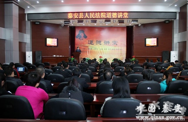 圍繞身邊人講身邊事,縣法院開設(shè)道德講堂,先后有“全國(guó)法院辦案標(biāo)兵”甘谷縣人民法院六峰法庭庭長(zhǎng)董雪莉、“全國(guó)法院人民滿意司法警察”縣法院司法警察大隊(duì)原大隊(duì)長(zhǎng)陳煥保、刑庭庭長(zhǎng)安高增等干警講述自己在工作崗位辛勤工作的事跡;觀看宋魚水、陳艷萍等全國(guó)優(yōu)秀法官斷案實(shí)錄,焦裕錄、孔繁森等優(yōu)秀共產(chǎn)黨員工作短片;學(xué)唱《公民道德歌》,鼓舞全院干警提高道德修養(yǎng),提高愛崗敬業(yè)、為民服務(wù)的熱忱。全體干警承諾要以更加積極的精神風(fēng)貌,更加努力的工作態(tài)度,更加健康的人格品質(zhì)投入到司法為民的工作實(shí)踐中去,為秦安法院各項(xiàng)工作的公正、廉潔、高效開展提供源源不斷的精神動(dòng)力和道德支持。
