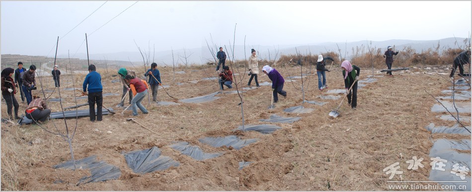 4月21日,在秦安縣興豐鄉(xiāng)高咀梁優(yōu)質(zhì)蘋果標準示范園,正在覆膜的張莊村村民魏永紅高興地告訴記者:“現(xiàn)在我們在好地里種果樹,在荒地種綠化樹,不僅改善了環(huán)境,也進一步減少了水土流失!