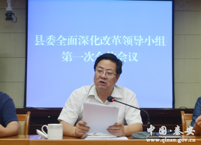8月19日,秦安縣召開縣委全面深化改革領導小組第一次全體會議,縣委書記、縣委全面深化改革領導小組組長王東紅主持會議并作重要講話?h委全面深化改革領導小組全體成員,各專項小組副組長及聯(lián)絡員,各鄉(xiāng)鎮(zhèn)黨委書記參加會議。