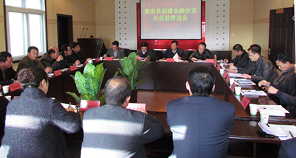 為了推動(dòng)金融扶貧示范縣創(chuàng)建穩(wěn)步開(kāi)展,進(jìn)一步提升扶貧開(kāi)發(fā)金融服務(wù)工作水平,11月20日下午,秦安縣召開(kāi)創(chuàng)建金融扶貧示范縣推進(jìn)會(huì),縣委常委、常務(wù)副縣長(zhǎng)任佩光,縣委常委、組織部長(zhǎng)丁曉來(lái),縣政府領(lǐng)導(dǎo)畢勝,金融辦、財(cái)政局、扶貧辦、果業(yè)局負(fù)責(zé)人,人行秦安支行、各金融機(jī)構(gòu)主要負(fù)責(zé)人及新型農(nóng)業(yè)經(jīng)營(yíng)主體代表,共計(jì)20多人參加了會(huì)議。
