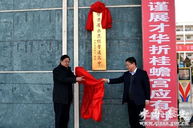 在揭牌儀式上,市教育局黨委副書記張璞銀宣讀了甘肅省教育廳命名秦安一中等4所學(xué)校為“甘肅省示范性普通高中”并頒牌的決定;秦安一中負(fù)責(zé)人介紹了省級(jí)示范學(xué)校創(chuàng)建情況;教師代表、學(xué)生代表作了發(fā)言;蘭州大學(xué)副校長安黎哲、市政府副市長張建杰、縣委書記王東紅分別作了講話?h委副書記、縣長程江芬主持揭牌儀式。
