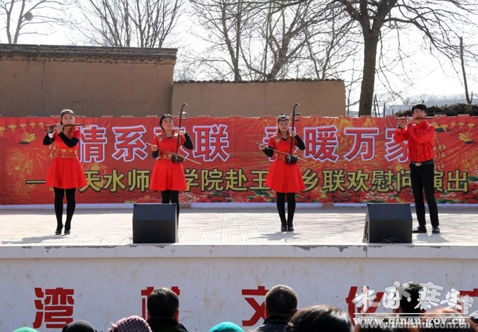 此次活動是天水師范學院發(fā)揮自身長處,發(fā)揮文化優(yōu)勢,加大“雙聯(lián)”行動宣傳力度,豐富人民群眾精神文化生活的一次具體行動。包括聲樂、器樂、舞蹈、獨唱、戲曲在內(nèi)的13個精彩紛呈的節(jié)目,贏得了當?shù)厝罕姷臒崃覛g迎和好評,取得了圓滿的演出效果,把當?shù)厝罕姾碗p聯(lián)干部的心緊緊地系在一起。