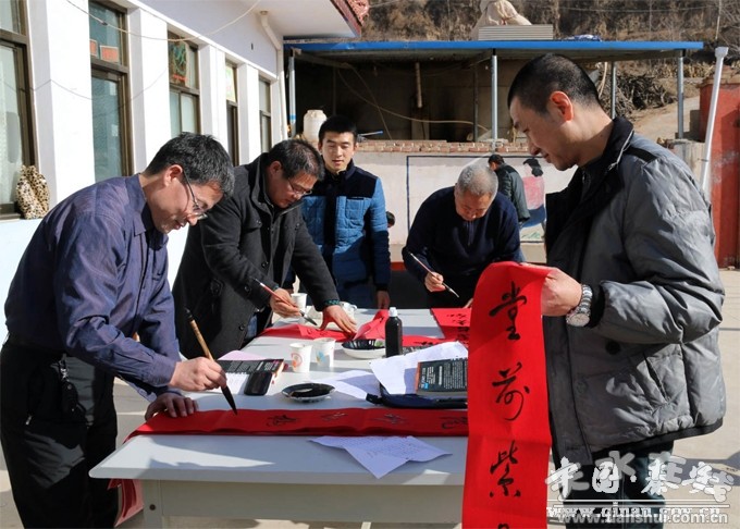 在慰問演出的同時,天水師范學院的藝術家們還向魏灣村的村民送書法作品,并現(xiàn)場為魏灣村村民寫春聯(lián)。這次活動的負責人稱,“雖然天氣有點冷,手寫得都酸了,但看到送出的春聯(lián)這么受歡迎,心變得暖烘烘的!蓖醺G鄉(xiāng)結合黨員冬訓,也在魏灣村文化廣場上,開展了農(nóng)村實用技術、市場經(jīng)濟、法律法規(guī)、外出務工等方面知識的宣傳。