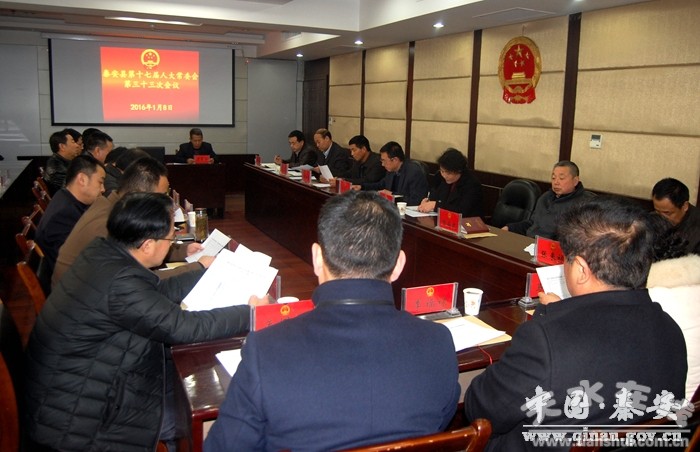 2016年1月8日,秦安縣人大常委會在縣行政辦公中心八樓人大會議室召開縣十七屆人大常委會第三十三次會議,會議由縣人大常委會主任郭海軍主持,縣人大常委會組成人員出席會議。縣委常委、縣政府副縣長任佩光,縣法院、縣檢察院、縣委組織部,不是組成人員的縣人大常委會辦公室及各工委負(fù)責(zé)人列席了會議。