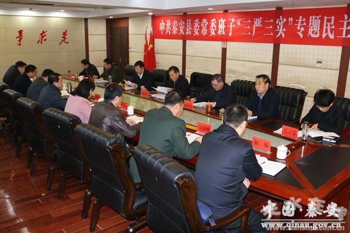 按照中央和省市委“三嚴(yán)三實(shí)”專題教育部署要求,1月8日,秦安縣委書記王東紅主持召開(kāi)縣委常委班子“三嚴(yán)三實(shí)”專題民主生活會(huì),緊扣“嚴(yán)以修身、嚴(yán)以用權(quán)、嚴(yán)以律己,謀事要實(shí)、創(chuàng)業(yè)要實(shí)、做人要實(shí)”主題,聯(lián)系班子和個(gè)人實(shí)際深入查擺問(wèn)題,嚴(yán)肅認(rèn)真開(kāi)展批評(píng)與自我批評(píng),深刻剖析產(chǎn)生問(wèn)題的原因,進(jìn)一步明確努力方向和整改措施。