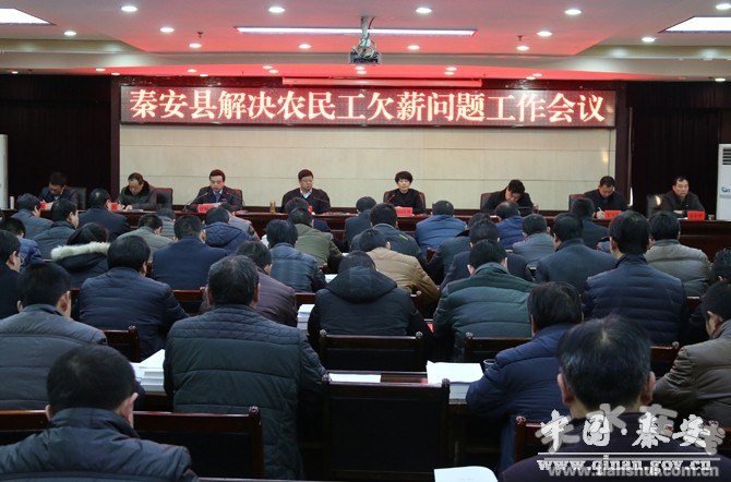 為了深入貫徹落實(shí)中央和省、市領(lǐng)導(dǎo)批示精神,切實(shí)解決好欠薪引發(fā)的矛盾問題,維護(hù)全縣社會大局持續(xù)和諧穩(wěn)定,1月31日,秦安縣召開解決農(nóng)民工欠薪問題工作會議。