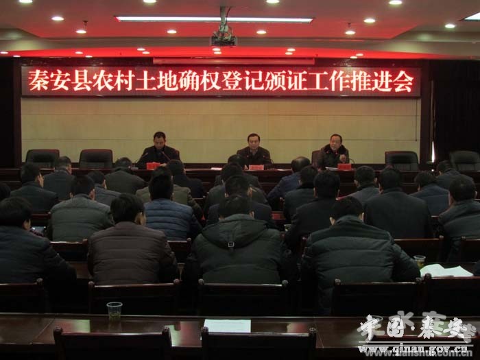 1月31日,秦安縣召開農(nóng)村土地承包經(jīng)營權(quán)確權(quán)登記頒證工作推進(jìn)大會(huì),縣委副書記裴貴軍,縣委常委、副縣長郭雙江,副縣長王玉安,以及相關(guān)部門負(fù)責(zé)人、各鄉(xiāng)鎮(zhèn)黨委書記、鄉(xiāng)鎮(zhèn)長參加了會(huì)議。