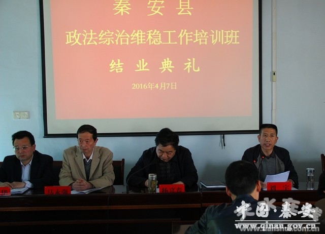 4月7日下午,為期3天的全縣政法綜治維穩(wěn)工作培訓(xùn)班圓滿結(jié)束,并在縣委黨校舉行結(jié)業(yè)典禮,秦安縣委常委、政法委書記楊喜春,縣政府副縣長(zhǎng)劉宇,縣委政法委、縣委黨校、縣綜治辦、維穩(wěn)辦、護(hù)路護(hù)線辦、防范辦、國(guó)安辦負(fù)責(zé)人和培訓(xùn)班全體學(xué)員共計(jì)180余人參加結(jié)業(yè)典禮。