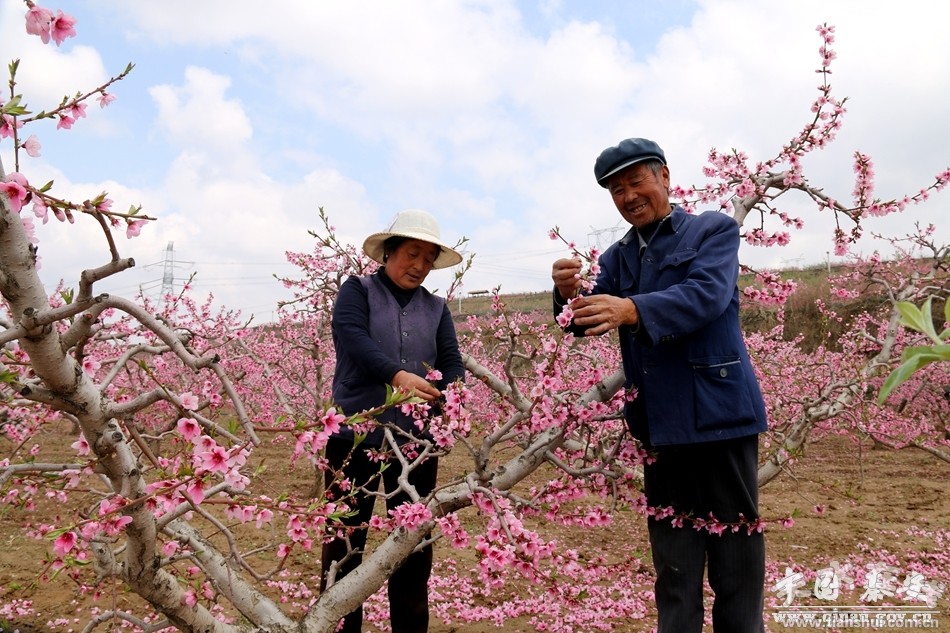 4月的秦安大地,春風(fēng)拂面,百花盛開(kāi)。中國(guó)美麗田園——?jiǎng)⑵喝f(wàn)畝蜜桃基地變成了一片粉紅色的桃花海洋……正在桃園里疏花的農(nóng)民喜笑顏開(kāi),前來(lái)賞花的周邊群眾熙熙攘攘,好一派“人面桃花相映紅”的景象。