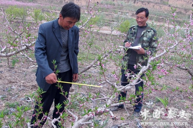 鄧成來就這樣以一名普通農(nóng)民的身份,默默地通過自身的能力讓一項(xiàng)項(xiàng)農(nóng)業(yè)新技術(shù)在貧瘠的黃土地上“生根發(fā)芽”,讓一顆顆紅富士蘋果像一個個待嫁的新娘,戴上了鮮艷的“紅蓋頭”,每當(dāng)成熟季節(jié),漫山遍野,就像無數(shù)的“紅燈籠”,照亮了農(nóng)民的“錢途”,指引著農(nóng)民人通向小康的陽光大道。在他的默默工作下,躺在書本中的科技知識活生生轉(zhuǎn)化成了果農(nóng)可以操作的賺錢手段,成為技術(shù)的學(xué)習(xí)者、傳播者,是真正能夠把知識轉(zhuǎn)化為生產(chǎn)力的帶頭人,體現(xiàn)了當(dāng)代農(nóng)民的良好精神風(fēng)貌。2006年至2009年期間,梨小食心蟲肆虐,每年80%-90%的桃子遭到蟲害,無法銷售,給果農(nóng)帶來了滅頂之災(zāi),在呼麗萍教授的指導(dǎo)下,在縣果業(yè)局的大力支持下,他潛心試驗(yàn)、調(diào)查摸索出了一整套有效防治蟲害的辦法,在推廣應(yīng)用的幾年里一舉消滅了病蟲害。2010年以來,在配合國家桃產(chǎn)業(yè)技術(shù)體系蘭州綜合試驗(yàn)站“十二五”計(jì)劃的各項(xiàng)試驗(yàn)、示范項(xiàng)目,如黑膜覆蓋、桃長枝修建、老果園改造、覆草、種草、袋挖肥等技術(shù)。為了弄清黑膜鋪設(shè)的好壞,他認(rèn)真觀察,仔細(xì)研究,觀察了地表到地下1.5米的果樹根系情況,數(shù)清根須,對照比較,用實(shí)際數(shù)據(jù)打消了推廣之初大家普遍懷疑的會造成果樹根系上移,會造成果子早熟等等誤解,取得的成效得到了林果專家的肯定,他種植的桃達(dá)到了國家綠色食品標(biāo)準(zhǔn),套袋桃售價達(dá)到6元/斤。加入天水市果業(yè)協(xié)會,秦安縣果農(nóng)協(xié)會,鄧成來更加忙了,因?yàn)樗募夹g(shù)推廣都是建立在實(shí)踐檢驗(yàn)的基礎(chǔ)上的,所以他不僅要抓好自己的果樹種植,技術(shù)試驗(yàn),還無償幫助其他果農(nóng),通過電話指導(dǎo)、深入田間地頭,風(fēng)里來雨里去,十多年如一日,在他的努力下,使一個個鄉(xiāng)村農(nóng)民慢慢都變成了像他一樣的果樹種植能手,致富帶頭人,土專家,新技術(shù)的推廣者,目前在他們的共同努力下引進(jìn)并推廣的農(nóng)業(yè)新技術(shù)達(dá)到十多項(xiàng),有高壟覆膜、桃長枝修建、覆草、種草、袋挖肥、測土配方施肥、老果園改造、性誘劑、糖醋液、迷向素、粘蟲板等,這些技術(shù)的成功應(yīng)用得到了國家桃產(chǎn)業(yè)技術(shù)體系各位專家的高度評價,認(rèn)為可在淺山干旱山區(qū)大力推廣。
