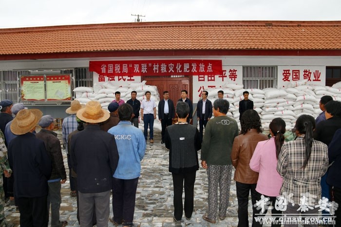 在此次災(zāi)后雙聯(lián)幫扶活動上,省國稅局為受災(zāi)的蓮花鎮(zhèn)大莊、新莊灣、灣兒、陽灣、雙廟村945戶村民,送來的價值24萬余元的化肥等農(nóng)資,幫助雙聯(lián)村渡過難關(guān)。