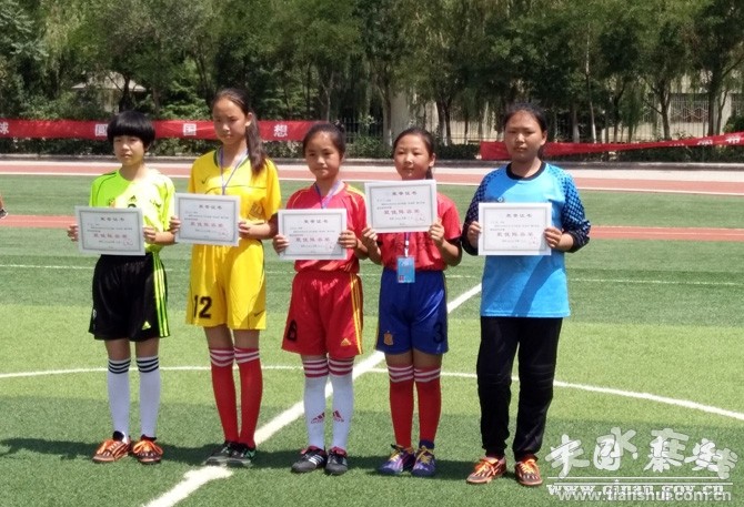 近日,天水市2015-2016年度“市長杯”青少年校園足球冠軍杯賽在天水師院落下帷幕。秦安縣五中足球隊(duì)獲高中組男子二等獲,縣興國二小女子足球隊(duì)獲小學(xué)組二等獎,興國二小男子足球隊(duì)獲小學(xué)組第五名,縣教體局獲優(yōu)秀組織獲,王多強(qiáng)、楊君平獲優(yōu)秀領(lǐng)隊(duì)獲,董暉、沈煒獲優(yōu)秀教練員獲,李云霞獲優(yōu)秀校長獎。