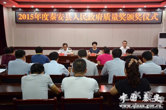 7月15日,秦安縣舉行2015年度政府質(zhì)量獎(jiǎng)?lì)C獎(jiǎng)儀式?h委副書記、縣長(zhǎng)程江芬出席頒獎(jiǎng)儀式。