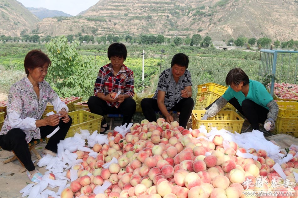 近年以來,秦安縣以打造全國果品產(chǎn)業(yè)重點(diǎn)縣為目標(biāo),按照“優(yōu)質(zhì)、高產(chǎn)、生態(tài)、安全”的果品生產(chǎn)理念,精密結(jié)合精準(zhǔn)扶貧工作,以市場為導(dǎo)向,以科技為支撐,以效益為中心,以品牌建設(shè)為重點(diǎn),充分發(fā)揮區(qū)位優(yōu)勢,調(diào)整結(jié)構(gòu),擴(kuò)大規(guī)模,強(qiáng)化服務(wù),突出特色,不斷做強(qiáng)做大果品產(chǎn)業(yè)。至2015年底,全縣共種植桃面積10.2524萬畝,掛果面積9.45萬畝,產(chǎn)量133245噸,產(chǎn)值37308.6萬元(建成日光溫室桃棚402座,結(jié)果402座,占地面積389畝,2014年總產(chǎn)量達(dá)389噸,實(shí)現(xiàn)產(chǎn)值838萬元)。