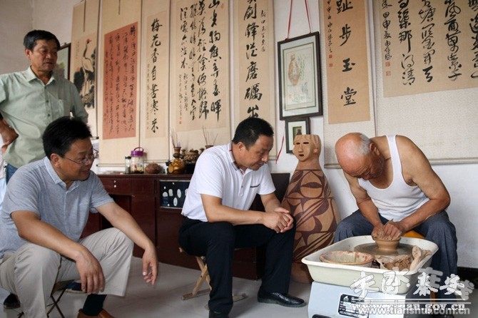 當(dāng)天,徐東明一行還深入到非物質(zhì)文化遺產(chǎn)秦安麥桿編傳承人郭香蓮、非物質(zhì)文化遺產(chǎn)康坡陶藝傳承人康新田家中看望慰問(wèn)他們。現(xiàn)場(chǎng)觀看了康坡陶藝和秦安麥桿編制作,并與兩位老人就工藝的傳承與發(fā)揚(yáng)進(jìn)行了探討,并希望兩位老人在保重身體的同時(shí),繼續(xù)創(chuàng)作更多更好的作品,積極培養(yǎng)接班人,為全縣非物質(zhì)文化遺產(chǎn)保護(hù)和傳承事業(yè)做出更大的貢獻(xiàn)。