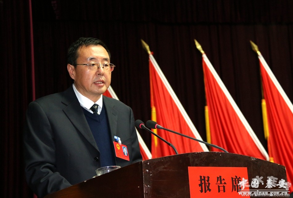 縣人大常委會(huì)主任郭海軍代表秦安縣第十七屆人民代表大會(huì)常務(wù)委員會(huì)向大會(huì)作工作報(bào)告。