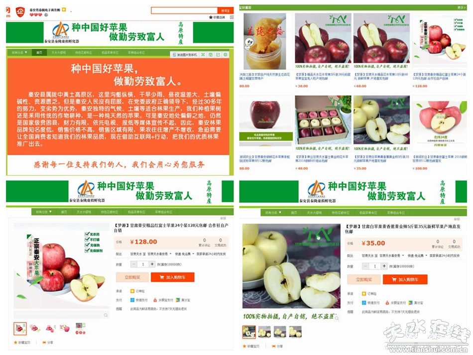 培育新興業(yè)態(tài),電商發(fā)展勢頭良好。2016年年初,秦隴電子商務(wù)平臺(孵化器)成立;2016年9月,與阿里巴巴正式簽署“農(nóng)村淘寶”項目合作協(xié)議。目前,秦隴孵化器平臺已成功入駐淘寶、微商城、善融商務(wù)3大電商平臺。同時,指導培訓個人網(wǎng)店362家,吸納就業(yè)人數(shù)1400余人,發(fā)展電子商務(wù)示范店23家,通過便民示范店為農(nóng)戶購進生產(chǎn)生活資料超過500余萬元。全縣各類網(wǎng)店交易額達到2.3億元,孵化器平臺銷售額突破30萬元。由于成績突出,秦隴孵化器平臺被授予縣級創(chuàng)業(yè)孵化示范基地。創(chuàng)新發(fā)展模式,推進商貿(mào)領(lǐng)域宣傳銷售的線上線下融合發(fā)展。線上先后推出 “我有一棵樹,足以來扶貧——‘種中國好蘋果,做勤勞致富人’甘肅秦安果樹認購活動”、“桃跑計劃”、“雙11”、“雙12”等網(wǎng)上促銷活動。果樹認購活動目前已認購2.77萬株,銷售金額586萬元。2016年11月份,秦安電商精準扶貧果品宣傳廣告在江蘇蘇州地鐵運營系統(tǒng)全面投放。12月參加了阿里巴巴農(nóng)村淘寶、湖南衛(wèi)視、優(yōu)酷聯(lián)合制作的“翻滾吧原產(chǎn)地”直播節(jié)目,更是將全縣線上宣傳推介活動推向高潮。12月12日,由中國品牌建設(shè)促進會、經(jīng)濟日報社、中央電視臺等聯(lián)合發(fā)布的“2016年品牌價值評價結(jié)果榜單”中秦安花椒名列其中,區(qū)域品牌價值高達75.91億元。線下先后舉辦了中國夢·秦安夢·電商夢——“我是秦安大學生,我為家鄉(xiāng)代言”大型電商公益晚會;秦安縣第二屆蜜桃鑒評會等。推出了“電商+金融+扶貧+林果”的電商扶貧新模式,2016年11月,在南京舉行了江蘇保險業(yè)助推秦安精準扶貧果品展示推介會,秦安企業(yè)代表夢源農(nóng)民合作社、華園果業(yè)等四家企業(yè)與國壽江蘇分公司團險部、蘇州歐圖歐食品科技有限公司等8家企業(yè)正式簽約,簽訂果品銷售合同3.5萬噸,簽約額3.8億元。為進一步加快全縣電子商務(wù)綜合服務(wù)平臺、物流配送服務(wù)網(wǎng)點、鄉(xiāng)村電子商務(wù)服務(wù)點建設(shè),有效解決農(nóng)村買難、賣難問題,2016年9月,秦安縣與阿里巴巴集團簽訂農(nóng)村淘寶項目合作協(xié)議,計劃在縣城內(nèi)建成面積不少于500平方米的辦公及倉儲為一體的縣級電商服務(wù)中心一個。截至目前,縣級電商服務(wù)中心已經(jīng)開始裝修。第一批農(nóng)村淘寶招募且面試通過的村小二有36人,第二期村小二招募已進入面試階段,后續(xù)的招募活動還在持續(xù)報名中。